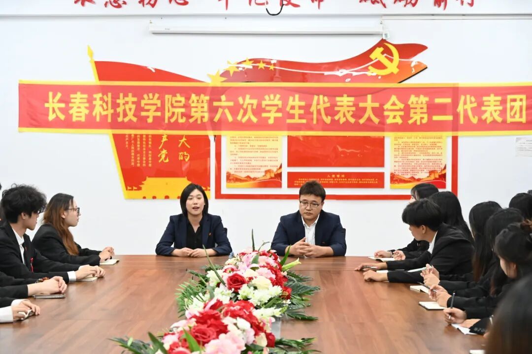 会上工作人员宣读了省学联关于学校召开学代会的批复和兄弟高校学生会对学校召开长春科技学院第六次学生代表大会的贺信以及群团组织致辞。智能制造学院团委书记赵雪代表教师团队向大会致辞。